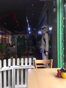 The walls, ceilings and shelves are packed full of a Forbidden Planet rammed toy box which has exploded and stuck to every interior wall. And that’s good because there’s plenty to entertain geeks and cult show loving children. At the same time, it’s not overwhelming and simply adds to an ambience rather than a sensory overload.