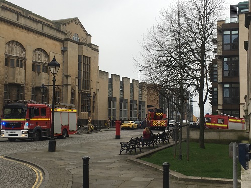 Avon Fire and Rescue Fire Engines Respond to Fire Alarm Central Library Bristol