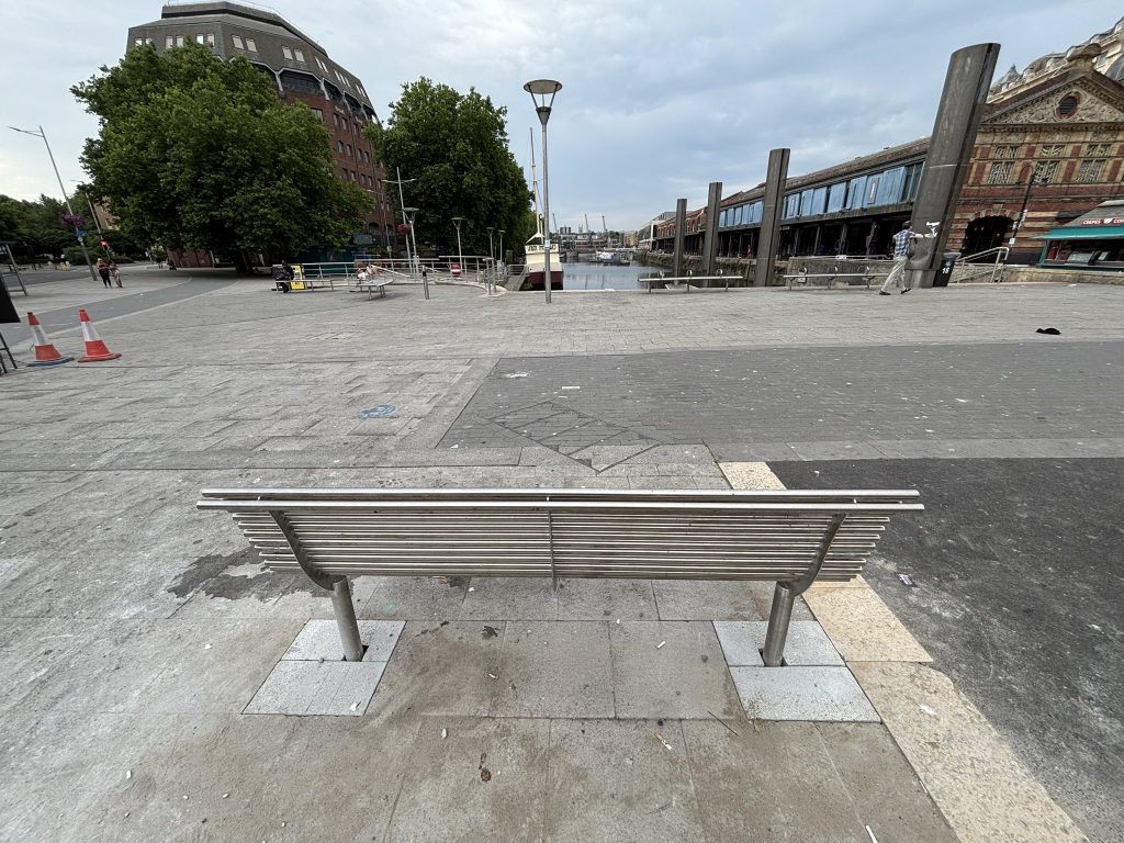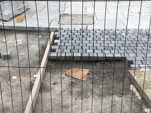 Tarmac was also laid in the areas formerly inhabited by the Weak Fountains this summer. The work included some questionable arrangements around the location of benches. The photograph below also shows the cycle lane prior to work to improve its visibility.