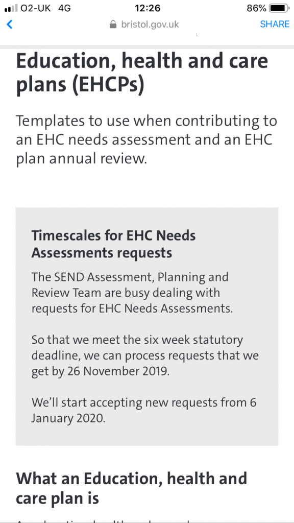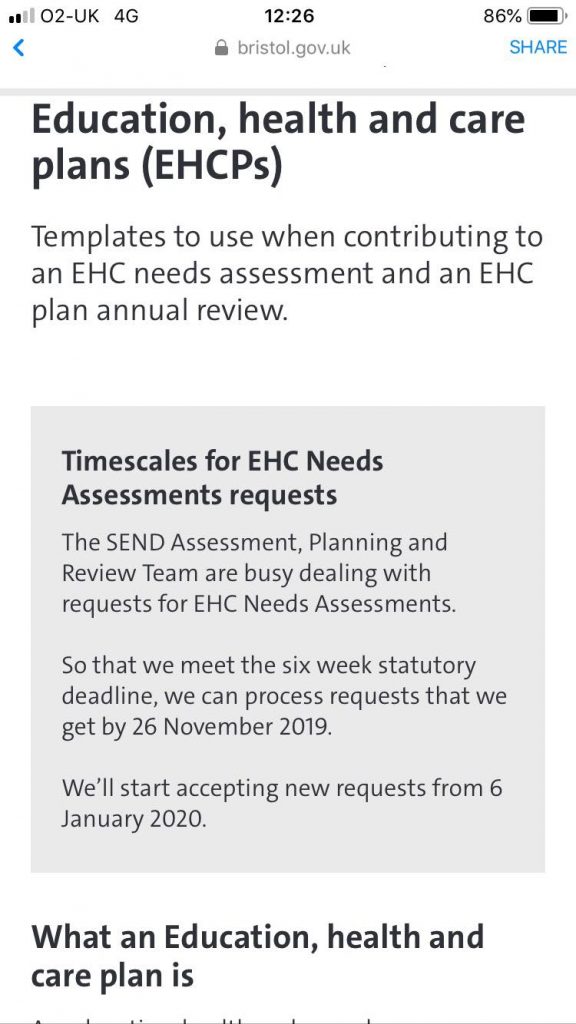 As good as their word, Bristol City Council’s Local Offer website was updated accordingly: