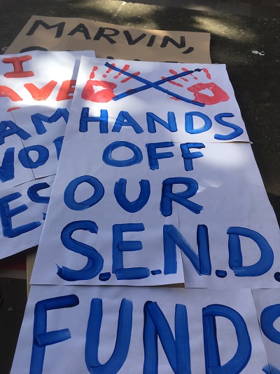 A rolled-up hearing was taking place inside, concerning Bristol City Council’s decision to make huge cuts to the Send budget in the city.