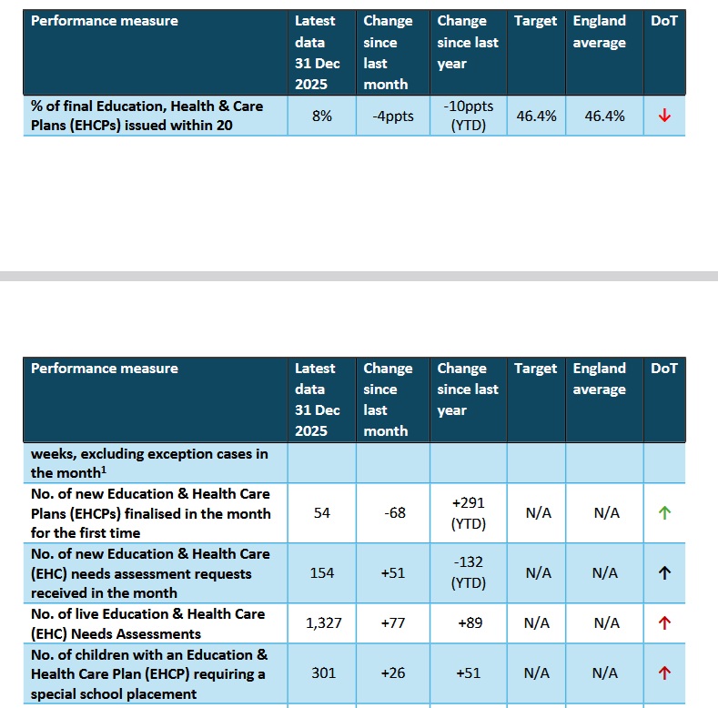 Papers continue: ”Progress against the EHCNA Improvement Plan continues to be monitored by QuIP Board. There has been a 37 per cent increase in new EHCPs finalised in the 2025 calendar year compared with 2024. Educational Psychology output has similarly strengthened, with a 53 per cent rise in EP reports completed over the same period.’