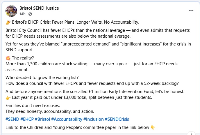 Bristol Send Justice Said: “Bristol’s EHCP Crisis: Fewer Plans. Longer Waits. No Accountability.