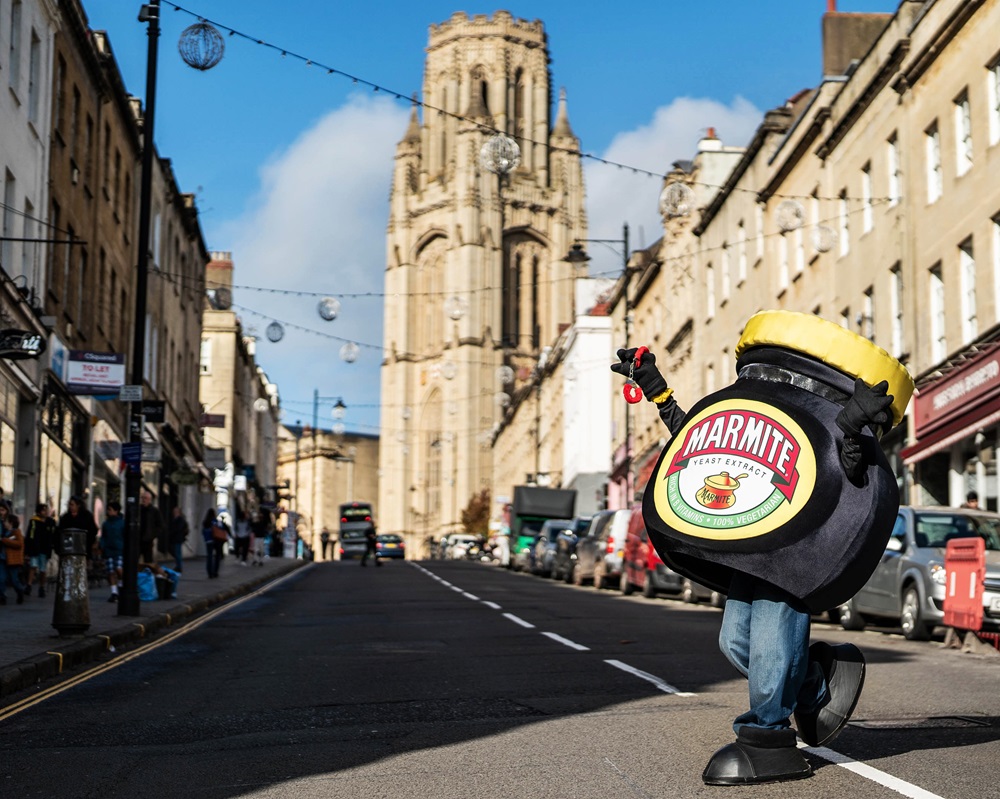 Marmite’s mascot Marmy, dropped into Bristol last week, with a Marmite taste-test for residents who have never before eaten the popular spread.