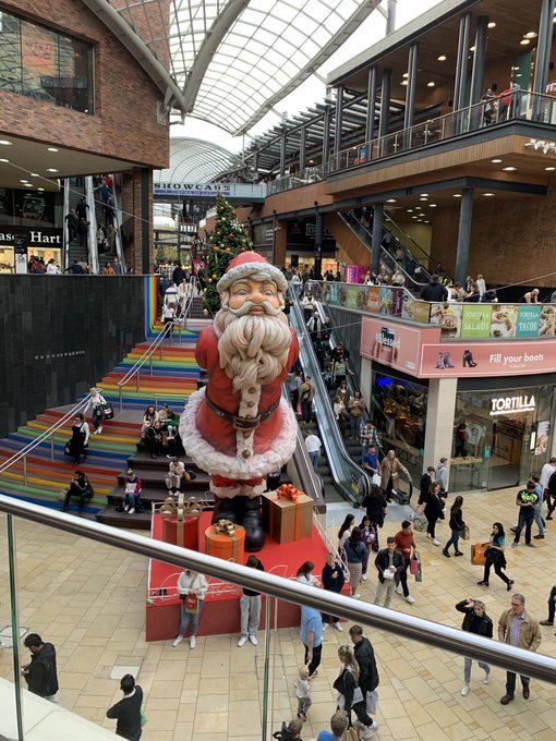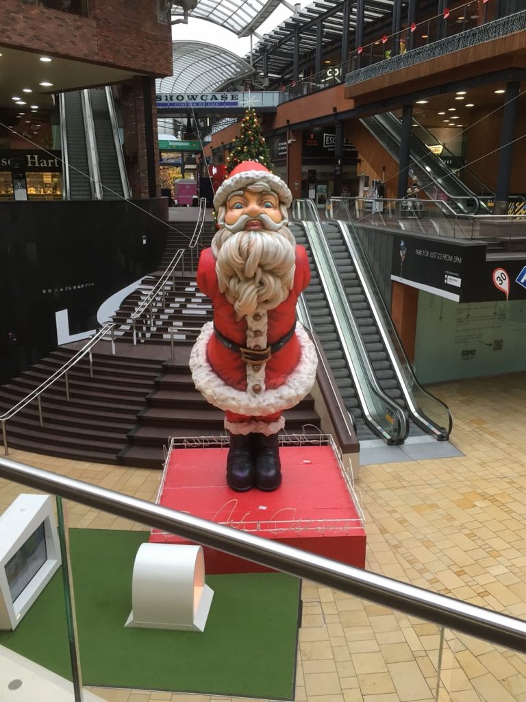 The huge Father Christmas which towered above shoppers in what appeared to be a transactional kiss for a present, has made an annual festive appearance at the Bristol shopping centre over the last five years.