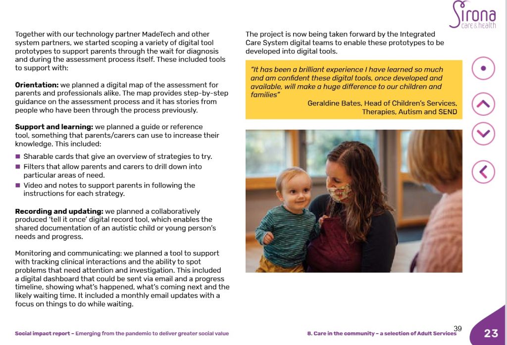 In November 2022, papers for Sirona’s Board meeting showed that the current wait for an autism assessment ‘can take up to two years’. Sirona were working with technology partner MadeTech to create digital tools to support families through the wait for a diagnosis.