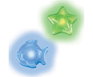 Munchkin’s Disco Tub Lights features two sea creature shaped lights that glow or flash as they float in water. Or they can be attached to the side of the bath with their suction cups. The lights auto shut off after 90 seconds. Batteries are not replaceable.