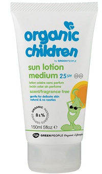 The Organic Children Sun Lotion Medium 25 SFP, ranked top of children’s sun care product tests by Scandinavian environmental group Green Living.