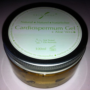 Skin Shop’s version of Cardiospermum Gel contains over five per cent of natural Cardiospermum from Sri Lanka and Aloe Vera extract from the Canary Islands.