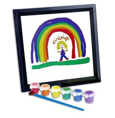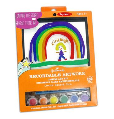 The Recordable Artwork from Hallmark, is a framed blank canvas board with a set of coloured paints and brush for youngsters to create their own artwork. The beauty of this set is that when finished, you can record a message up to 40 seconds long. This message can be protected by flicking a switch in the battery compartment. You can also record over it until you are happy with it, or wish to change it.