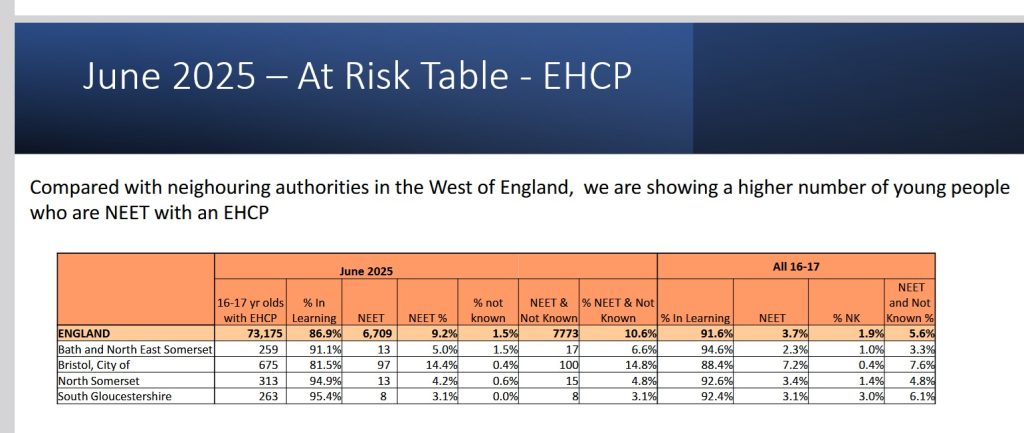 He also said the council needs to ‘investigate’ why young people with an EHCP in Bristol are ‘twice as likely’ to be NEET in comparison to other West of England Local Authorities.