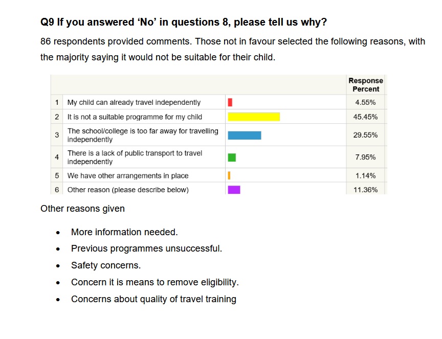 Other issues raise by those responding to the consultation said that they had ‘safety concerns’ and that previous programmes their child had attempted had been ‘unsuccessful’.