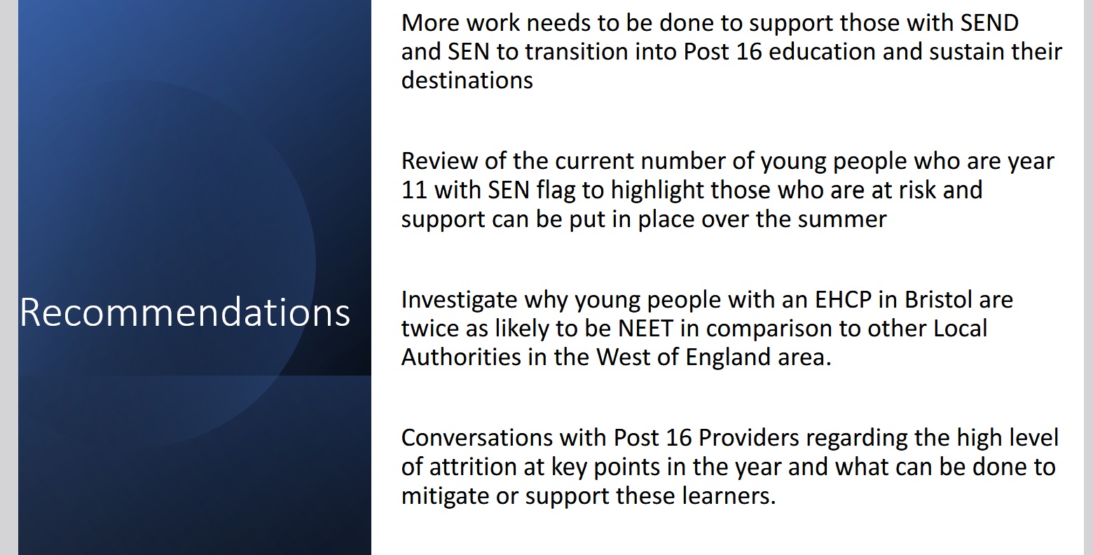 He also said the council needs to ‘investigate’ why young people with an EHCP in Bristol are ‘twice as likely’ to be NEET in comparison to other West of England Local Authorities.
