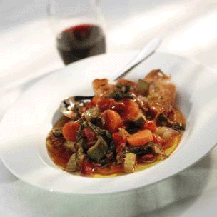 1. Heat the oil in a large pan, add the onion, carrot, celery and garlic and sauté for 5 mins until soft and pale golden. Add the courgette and cabbage fry for 2 mins. Add the beans, tomatoes, wine, stock and thyme; bring to the boil. Cover and simmer for 15-20 mins or until all the vegetables are tender.