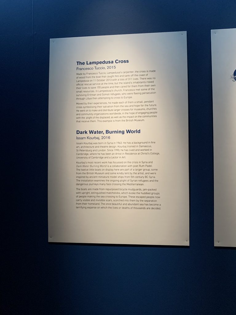 The display features the Lampedusa Cross and Dark Water, Burning World.