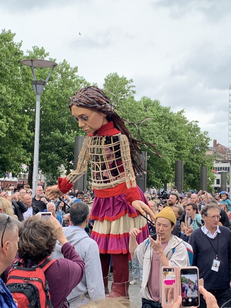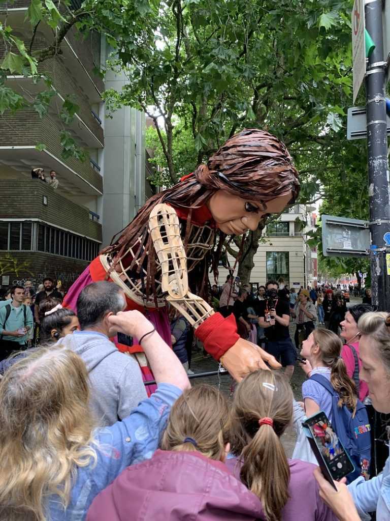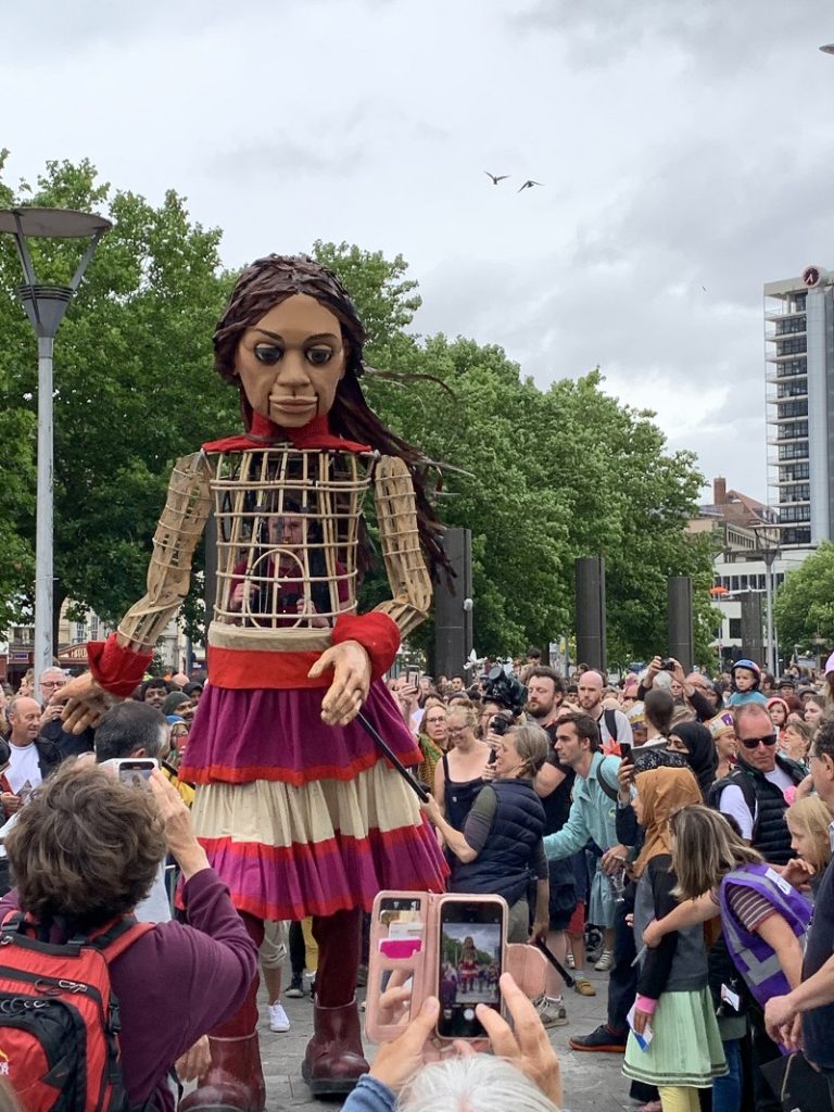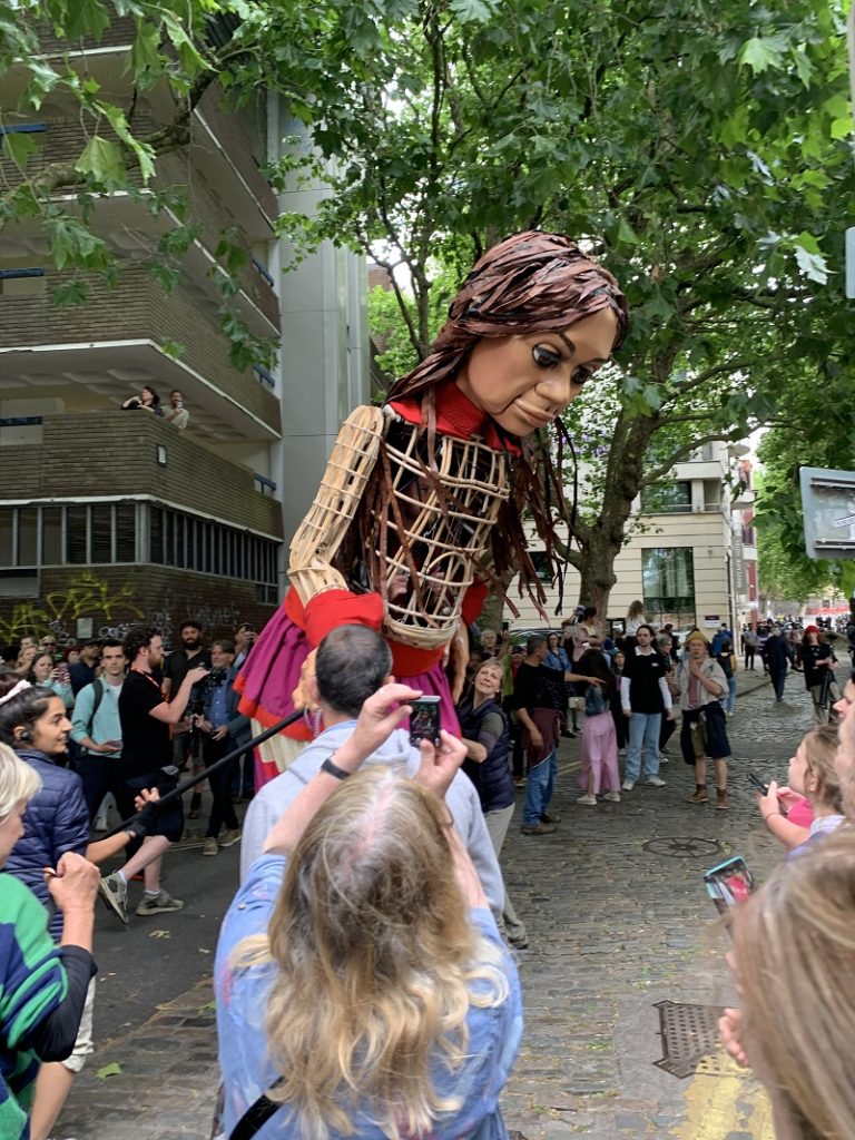 Little Amal, the puppet of a Syrian refugee child, came to Bristol today as part of World Refugee Week. She spent Friday afternoon in the centre of Bristol, where she was joined by residents as she took a walk around the Old City and Harbour before departing on a ferry.