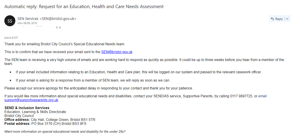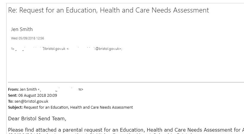 I have no faith that Bristol City Council can run these things within the requirements of the law and I decided to call the Send team this afternoon just to make sure it was being processed.