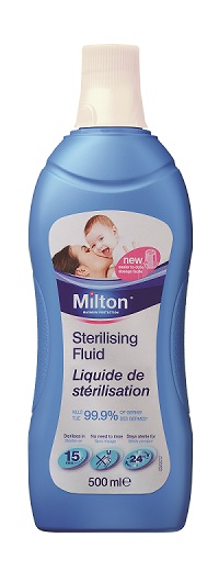 The Milton Sterilising Fluid requires just 1ml per litre of water with items immersed for just 15 minutes.