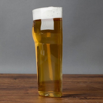 This Half A Pint glass is split squarely down the middle and is also suitable for Wine as well as lager.
