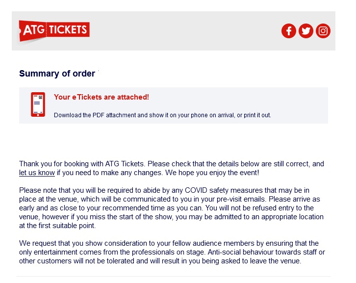 ATG was also forced to remind audiences that anti-social behaviour towards staff would not be tolerated when sending customer tickets out.